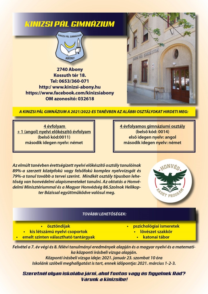 Felvételi tájékoztató a 2021/2022-es tanévre 2020-10-192021-04-16 by admin / A részletes felvételi tájékoztató az alábbi linken található: felvételi tájékoztató 2021-2022 Ha tetszett ossza meg! Facebook Twitter